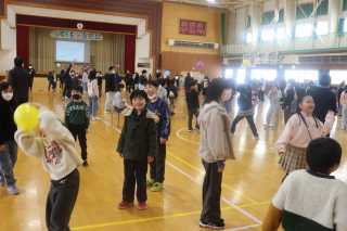 今日の3,4校時目には、今までお世話になった6年生に感謝の気持ちを伝える、6年生を送る会を行いました。この会を終えると、いよいよ6年生が卒業だという実感が沸いてきます。「6年生クイズ」「6年生ゲーム」と、縦割り班に分かれて6年生との交流を楽しみながらも、どこか寂しい気持ちがするのは、みんながそのことを感じているからです。 1年生に手を引かれて入場し、3年生が作る花のアーチをくぐる6年生。2年生と4年生からプレゼントを受け取る6年生。5年生に委員会のファイルを手渡す6年生。最後は、全校にダンスと合奏を披露してお礼を伝える6年生。どの場面でも、6年生は、最高学年として輝いていました。そんな6年生に在校生もしっかりと感謝の想いを伝えることができた温かな会になりました。 |